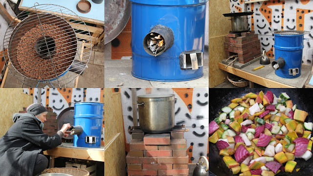 Selbstgebaute Infrastrukturen ermöglichen es den GärtnerInnen im KEBAP-Gemeinschaftsgarten, ohne Strom zu kochen, zu kühlen und hauptsächlich Regenwasser zum Gießen zu nutzen. Im Workshop zeigen sie, wie die Anlagen funktionieren und geben Auskunft über Materialien und Beschaffung. Im praktischen Teil steht der Bau von zwei verschiedenen Rocketstoves im Mittelpunkt: einer aus Ziegelsteinen einer als Tonne. Ein Rocketstove ist eine leicht baubare, mobile Kochstelle, die sich zum energieeffizienten Kochen eignet.