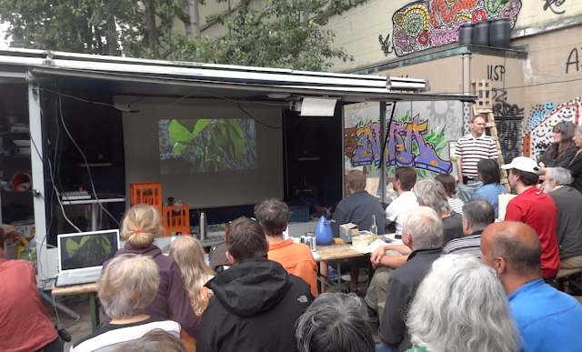 | die Tonnen sollen das Regenwasser zum Giessen vom Bunkerdach auffangen |